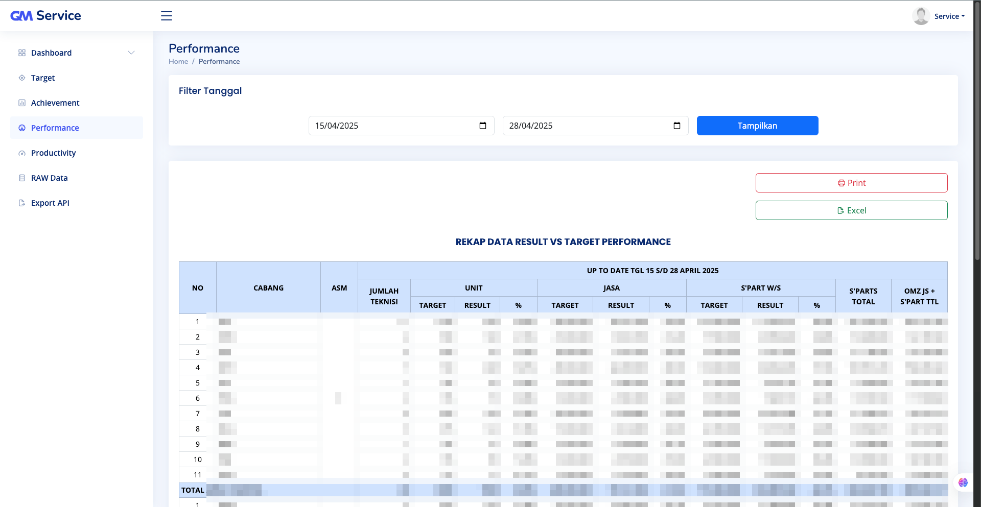Website Query Master Service adalah aplikasi berbasis web yang dirancang untuk membantu pelaporan dan pemantauan pencapaian kinerja dealer, khususnya di bidang layanan Service (bengkel). Aplikasi ini menyediakan fitur untuk menampilkan performa keseluruhan bengkel, detail pencapaian tiap mekanik di masing-masing dealer, serta informasi insentif baik untuk tim bengkel maupun perorangan. Selain itu, sistem ini mendukung proses Export dan Import data melalui file Excel untuk memudahkan pengelolaan dan pelaporan data.